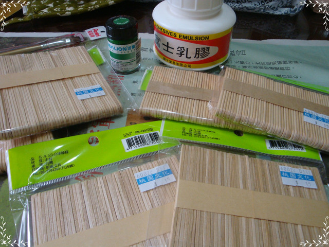 先去買不同長短的冰棒棍、廣告顏料、水彩筆、乳膠