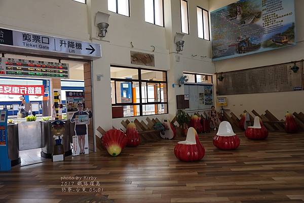 月台上也有蓮霧座椅之外,連木頭座椅都可以發現蓮霧造型的小巧思。